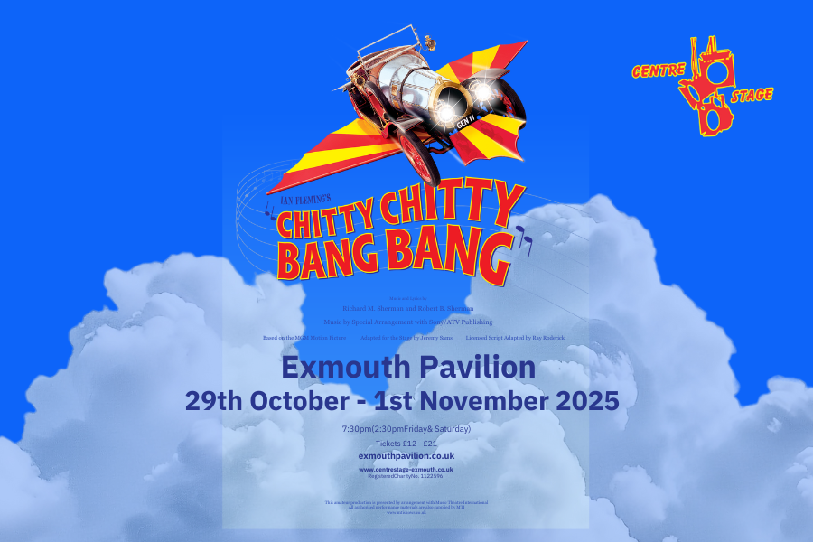 You can buy tickets for Budleigh Salterton, Topsham, The Blackmore Theatre and Dawlish fromΒ https://www.ticketsource.co.uk/Centre-Stageexmouth